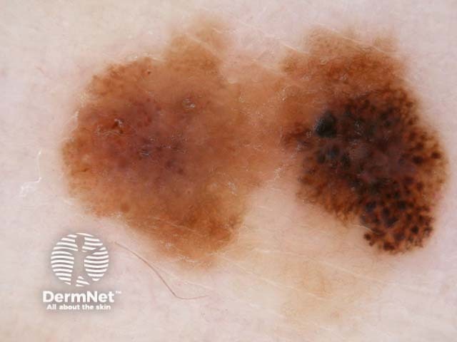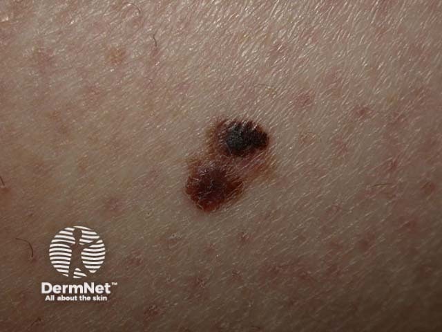 Melanoma 0.65mm, vertical growth phase, arising in a pre-existing naevus.
