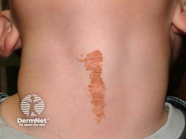 Epidermal naevi (are developmental anomalies that follow the lines of Blaschko. Although often present at birth, they may appear later in childhood. Small ones consist of single or multiple parallel linear grey-brown warty plaques. Larger ones are linear on the limbs but tend to follow a predictable swirling pattern on the trunk. At times they are quite inflammatory (ILVEN or Inflammatory Linear Verrucous Epidermal Naevus). Incontinentia pigmenti and hypomelanosis of Ito are other less common ‘birthmarks’ that follow a similar linear and swirled arrangement. They are believed to be due to somatic mosaicism, but the exact mechanism has not yet been worked out.