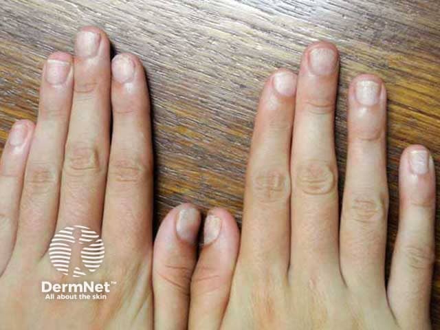 Nail changes were seen in almost 50% in one large series of children with alopecia areata, particularly pitting and trachyonychia (see Nail terminology). Nail changes do not correlate with the severity of the alopecia areata.