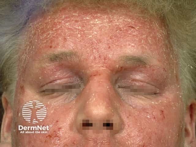 Lichenified and exudative atopic eczema on the face