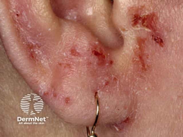 Crusted exudative atopic eczema in an adult (AD-patient6)