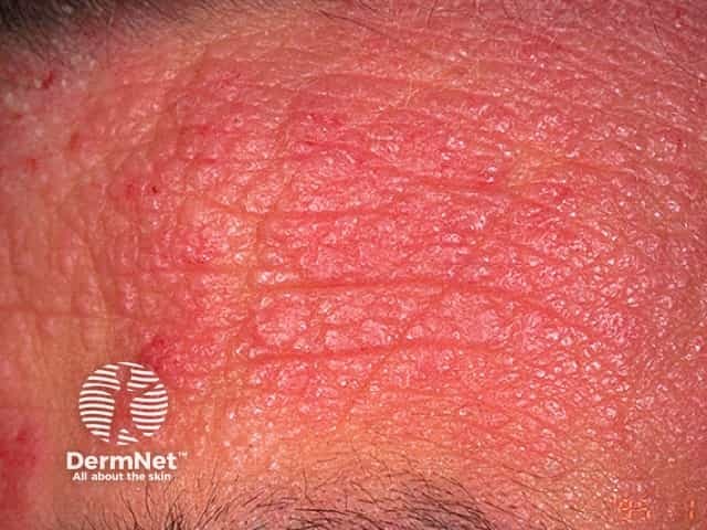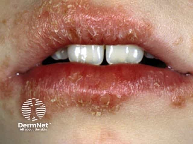 Patchy mild atopic eczema on the chin
