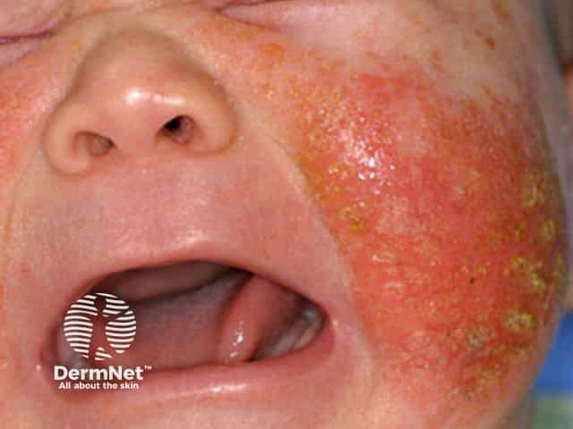 Lichenified and scaly cheek atopic eczema in an African toddler