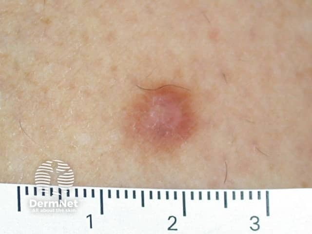 Common benign skin lesions of melanocytic origin include the ephilis, lentigo simplex, and melanocytic naevus (mole).