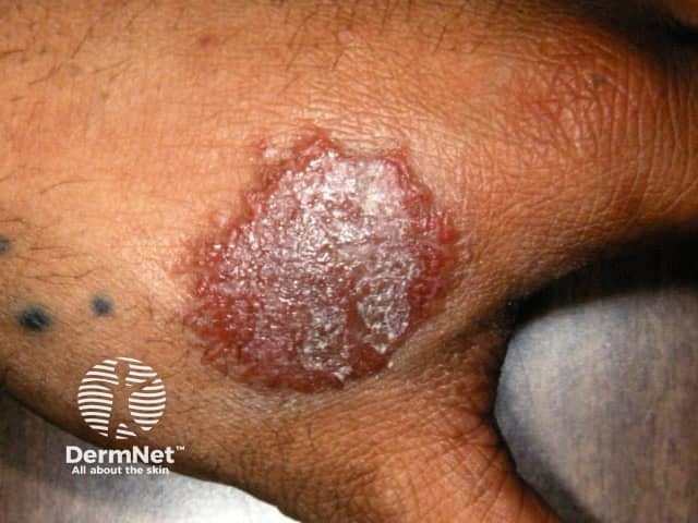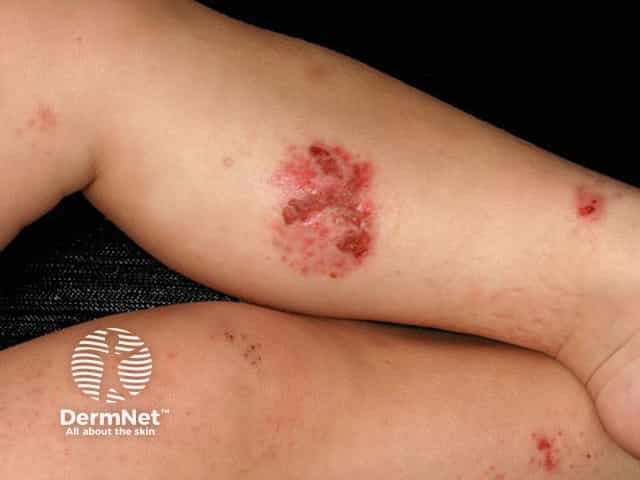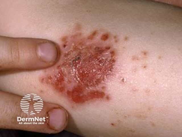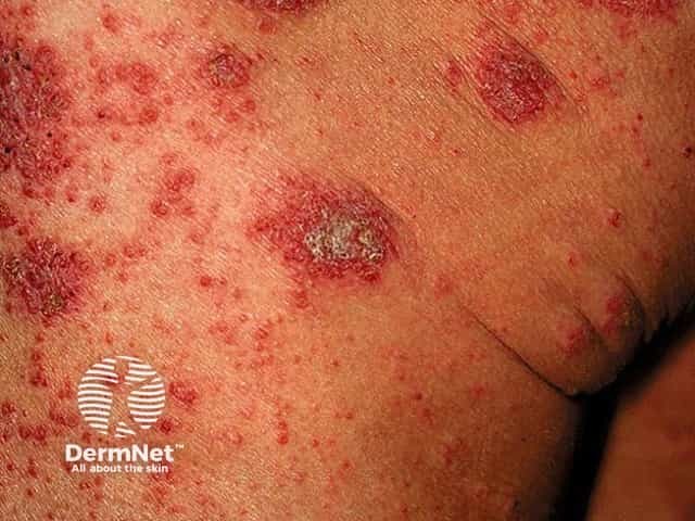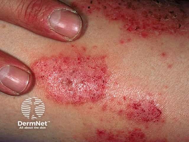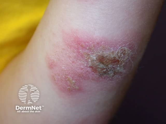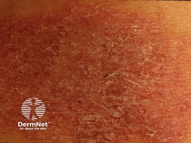 Scaling over discoid eczema in skin of colour (ND-patient2)