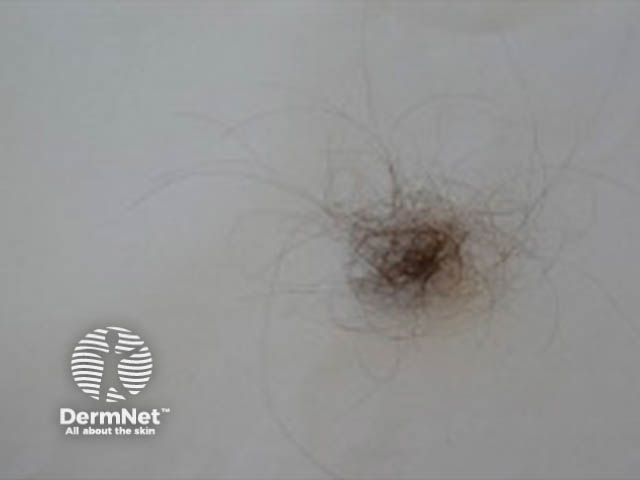 Everyone is born with a fixed number of hair follicles on the scalp that produce hairs throughout life. Hair grows from the base of the follicle at a rate of about one centimetre a month for about three years. This growth phase is called anagen. After anagen, the hair dies (catagen hair) and no longer grows. It sits dormant in the follicle for a three-month phase called telogen. After telogen, the hair follicle undergoes another anagen phase to produce new hair that grows out of the same follicle. As it grows, the old telogen hair is dislodged or pushed out. The hair cycle continues throughout life.
