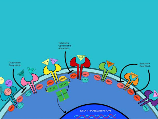 Janus kinase (JAK) inhibitors, also called jakinibs or JAKis, are small molecules that interrupt the JAK-STAT (Signal Transducer and Activator of Transcription) signalling pathways involved in the pathogenesis of many immune-mediated inflammatory diseases (IMIDs).
