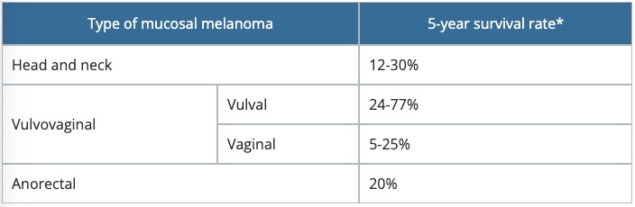 Mucosal melanoma is a rare type of melanoma that occurs on mucosal surfaces. Mucous membranes are moist surfaces that line cavities within the body. This means that mucosal melanoma can be found in the respiratory tract, gastrointestinal tract or genitourinary tract.