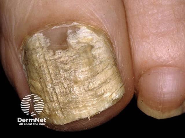 Total onychomycosis showing gross subungal hyperkeratosis (ONYC-patient4)